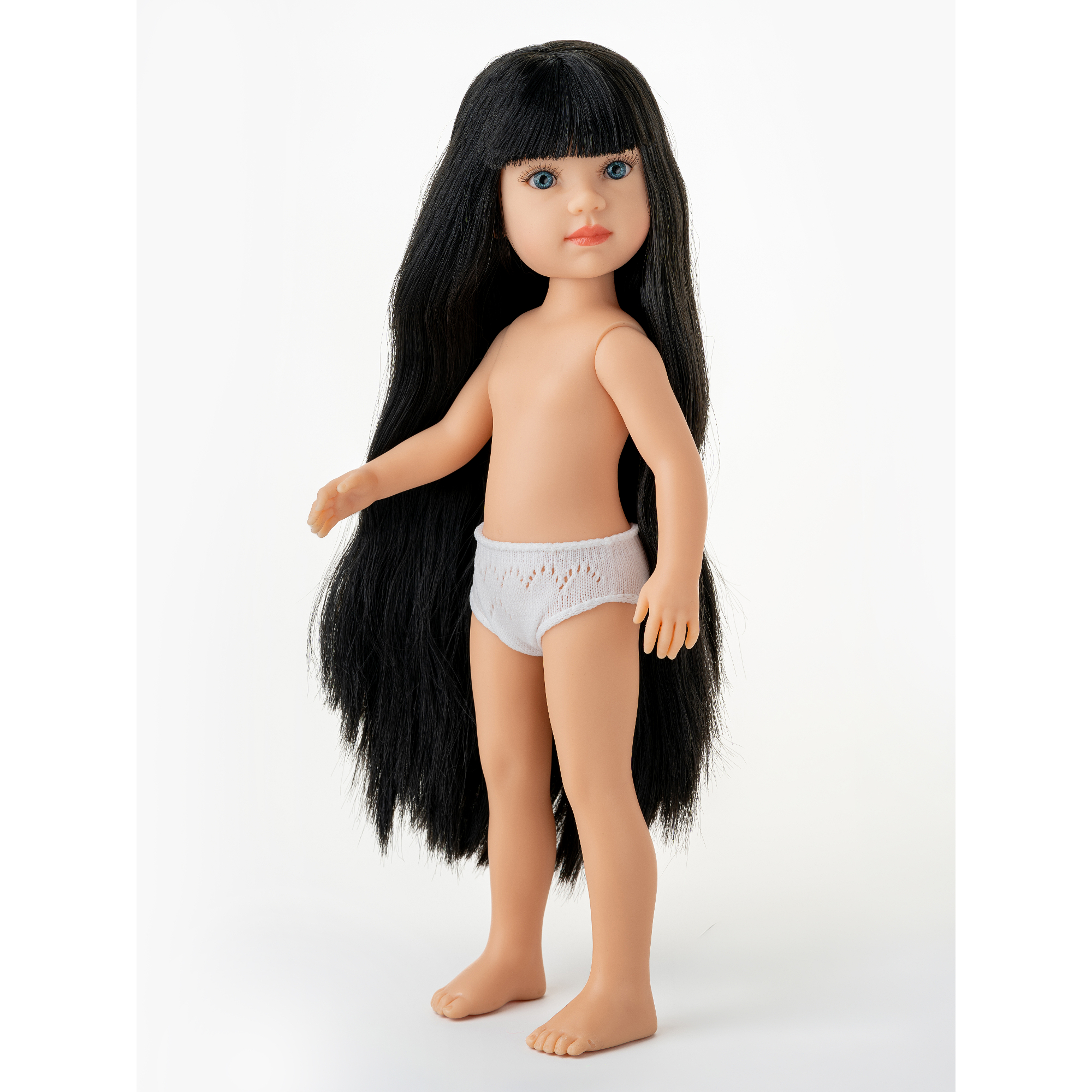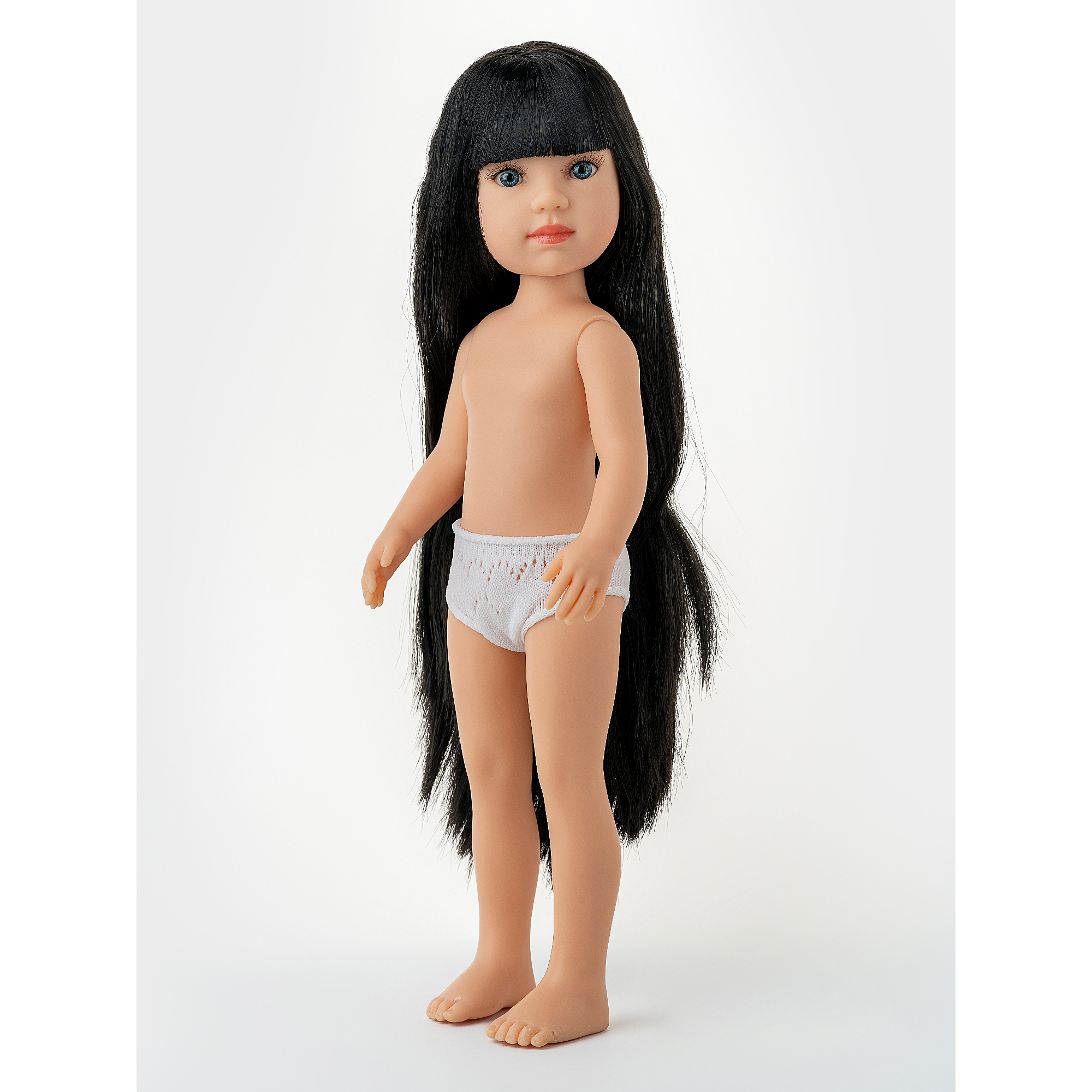 Кукла без одежды Марикита Перес - Диана - Брюнетка с челкой и синими глазами, 32 см (обновленный скинтон) (Mariquita Perez Diana Nude Doll).